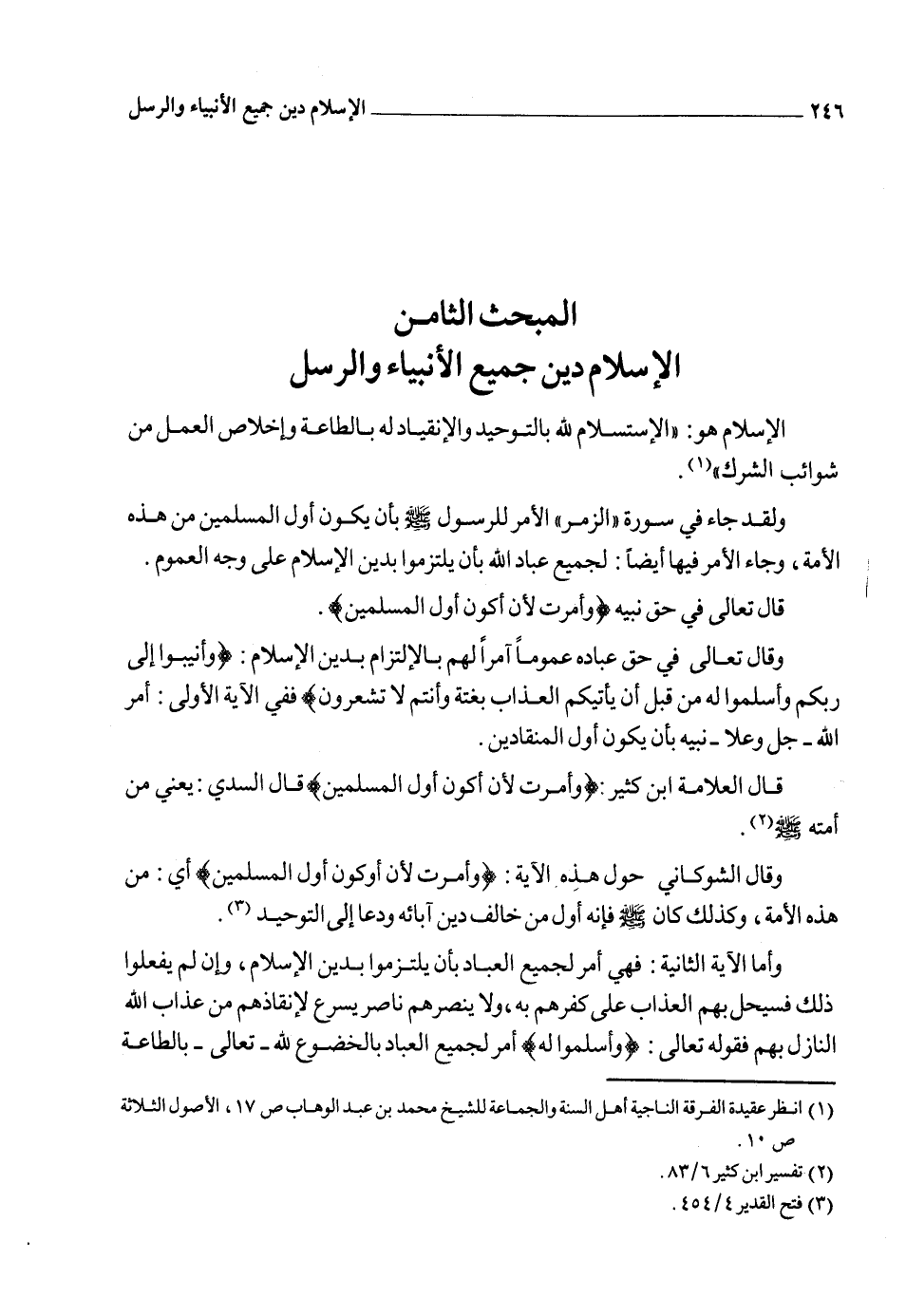فالإسلام هو دين جميع الأنبياء والمرسلين كما صرح بذلك القرآن والسنة قال تعالى: {إِنَّ الدِّينَ عِنْدَ اللهِ الإسْلام} 1. قال العلامة ابن القيم: يعني الذي جاء به محمد وهو دين الأنبياء من أولهم إلى آخرهم ليس لله دين سواه {وَمَنْ يَبْتَغِ غَيْرَ الإسْلامِ دِيناً فَلَنْ يُقْبَلَ مِنْهُ وَهُوَ فِي الآخِرَةِ مِنَ الْخَاسِرِينَ} 2 وقد دل قوله تعالى: {إِنَّ الدِّينَ عِنْدَ اللهِ الإسْلام} على أنه دين جميع أنبيائه ورسله وأتباعهم من أولهم إلى آخرهم وأنه لم يكن لله قط دين سواه. أ. هـ3.