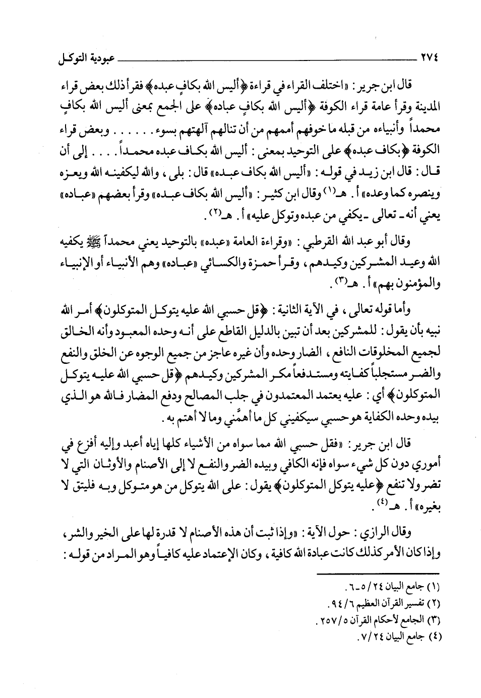{قُلْ حَسْبِيَ اللهُ عَلَيْهِ يَتَوَكَّلُ الْمُتَوَكِّلُونَ} فإذا ثبت هذا الأصل لم يلتفت العاقل إلى تخويف المشركين فكان المقصود من هذه الآية هو التنبيه على الجواب فما ذكره الله تعالى قبل هذه الآية وهو قوله ـ تعالى ـ {وَيُخَوِّفُونَكَ بِالَّذِينَ مِنْ دُونِهِ} أ. هـ1.