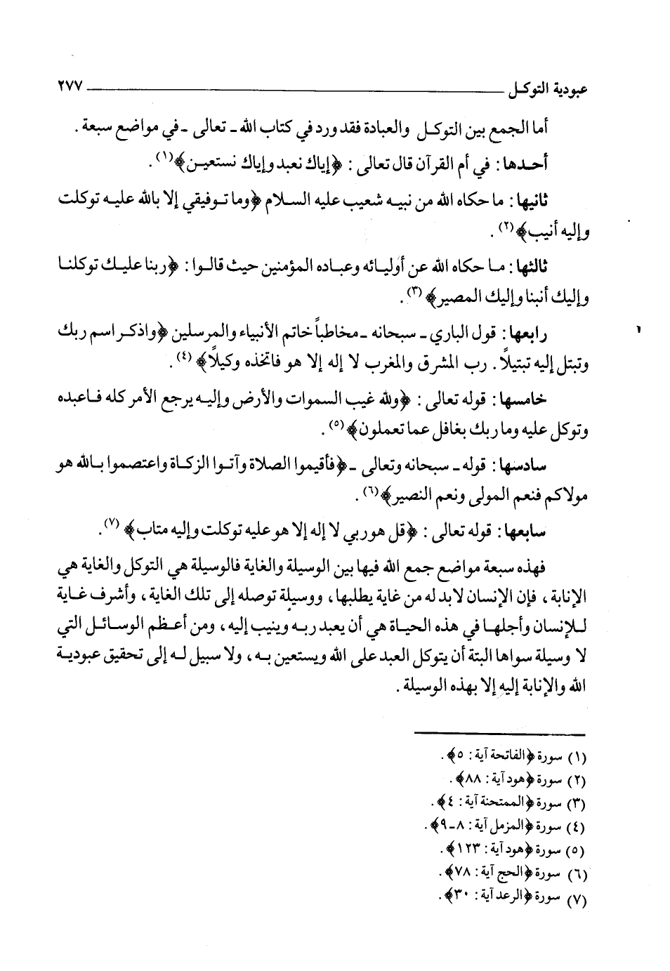 وأما الجمع بين التوكل والإسلام: فمثل قوله تعالى: {وَقَالَ مُوسَى يَا قَوْمِ إِنْ كُنْتُمْ آمَنْتُمْ بِاللهِ فَعَلَيْهِ تَوَكَّلُوا إِنْ كُنْتُمْ مُسْلِمِينَ} 4.