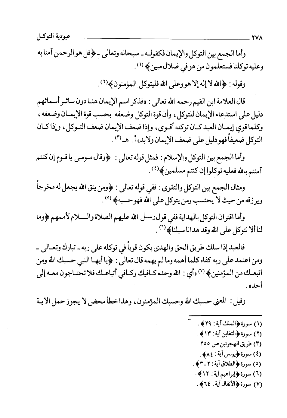 وتأمل كيف جعل الإيتاء لله ولرسوله كما قال تعالى: {وَمَا آتَاكُمُ الرَّسُولُ فَخُذُوهُ} 4 وجعل الحسب وحده فلم يقل: وقالوا حسبنا الله ورسوله بل جعله خالص حقه كما قال تعالى: {إِنَّا إِلَى اللهِ رَاغِبُونَ} 5 ولم يقل وإلى رسوله بل جعل الرغبة إليه ـ وحده ـ كما قال تعالى: {فَإِذَا فَرَغْتَ فَانْصَبْ. وَإِلَى رَبِّكَ فَارْغَبْ} 6 فالرغبة، والتوكل والإنابة، والحسب لله ـ وحده ـ كما أن العبادة والتقوى والسجود لله ـ وحده ـ والنذر والحلف لا يكون إلا له ـ سبحانه وتعالى ـ"أ. هـ7.