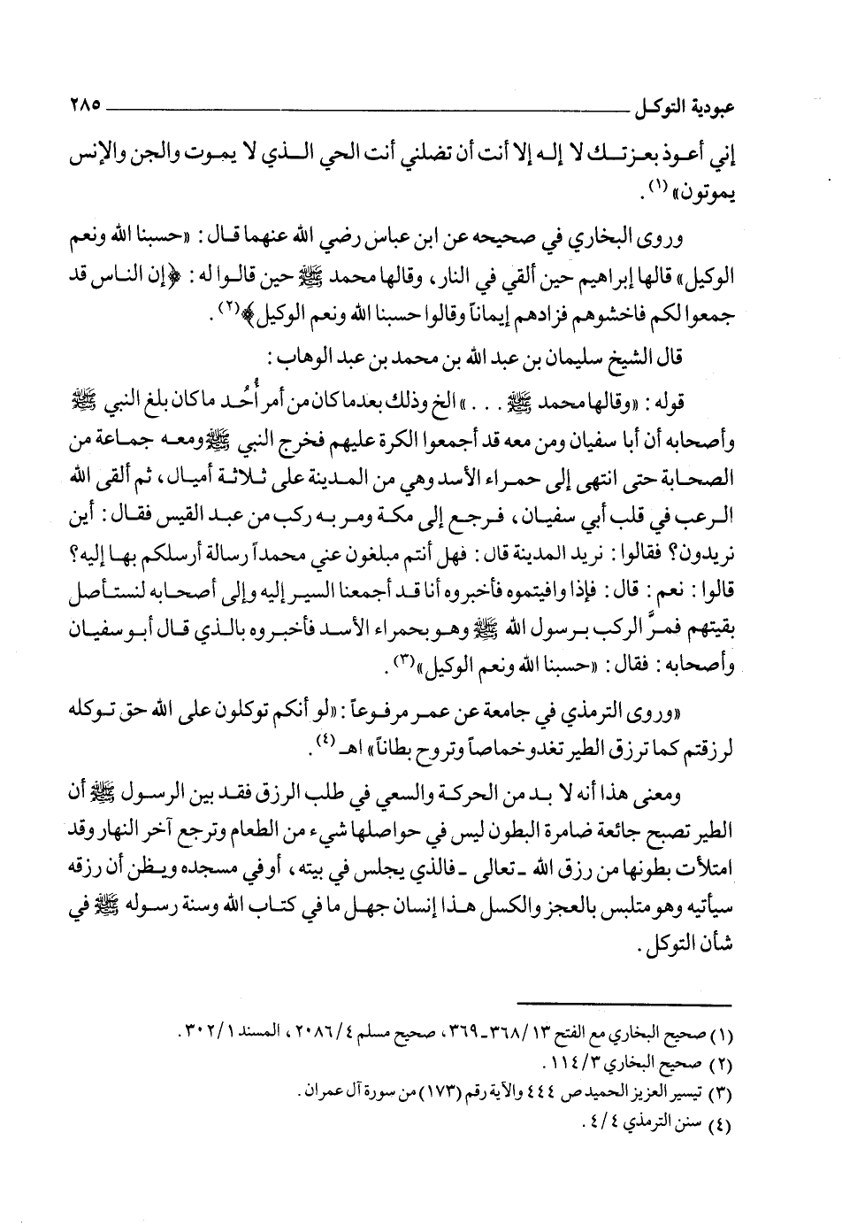 وبالجملة فإنه ورد الكثير من النصوص في الكتاب والسنة في بيان فضل التوكل على الله وإخلاصه لله ـ وحده لا شريك له ـ فما على العبد إلا أن يسعى جاهداً في تحقيق عبودية التوكل ويفوض أمره إلى الله ويعتمد عليه وحده ويحسن ظنه بربه، وعلى قدر حسن ظن العبد بربه ورجائه له يكون توكله عليه، وذلك لأن حسن الظن بالله يدعو العبد إلى التوكل عليه، ولا يمكن حصول التوكل على من ساء ظنه به، ولا يمكن التوكل على من لا يرجوه.