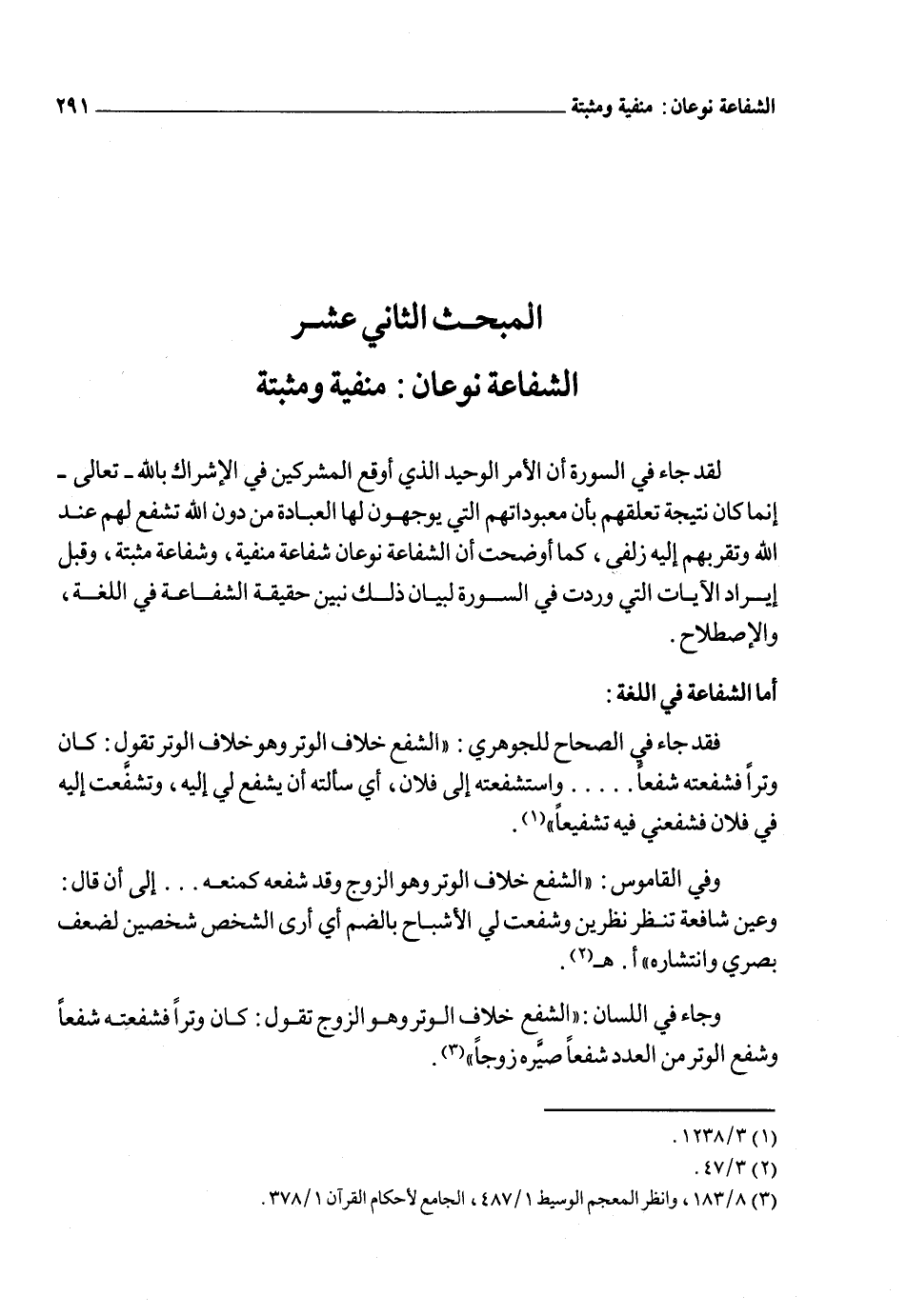 وقال الراغب: "الشفع: ضم الشيء إلى مثله والشفاعة الانضمام إلى آخر ناصراً له وسائلاً عنه، وأكثر ما يستعمل في انضمام من هو أعلى مرتبة إلى من هو أدنى ومنه الشفاعة في القيامة"5.