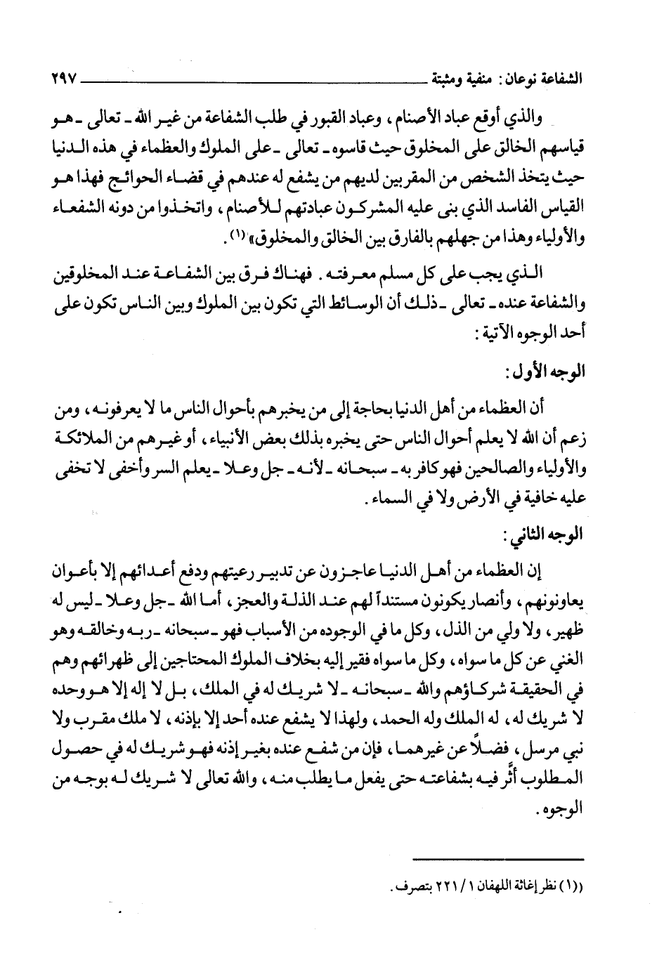 1- الواسطة بين الحق والخلق لابن تيمية ص17 ـ 19 بتصرف، وانظر إغاثة اللهفان 1/223، وانظر الهدية السنية لابن سحمان ص51.