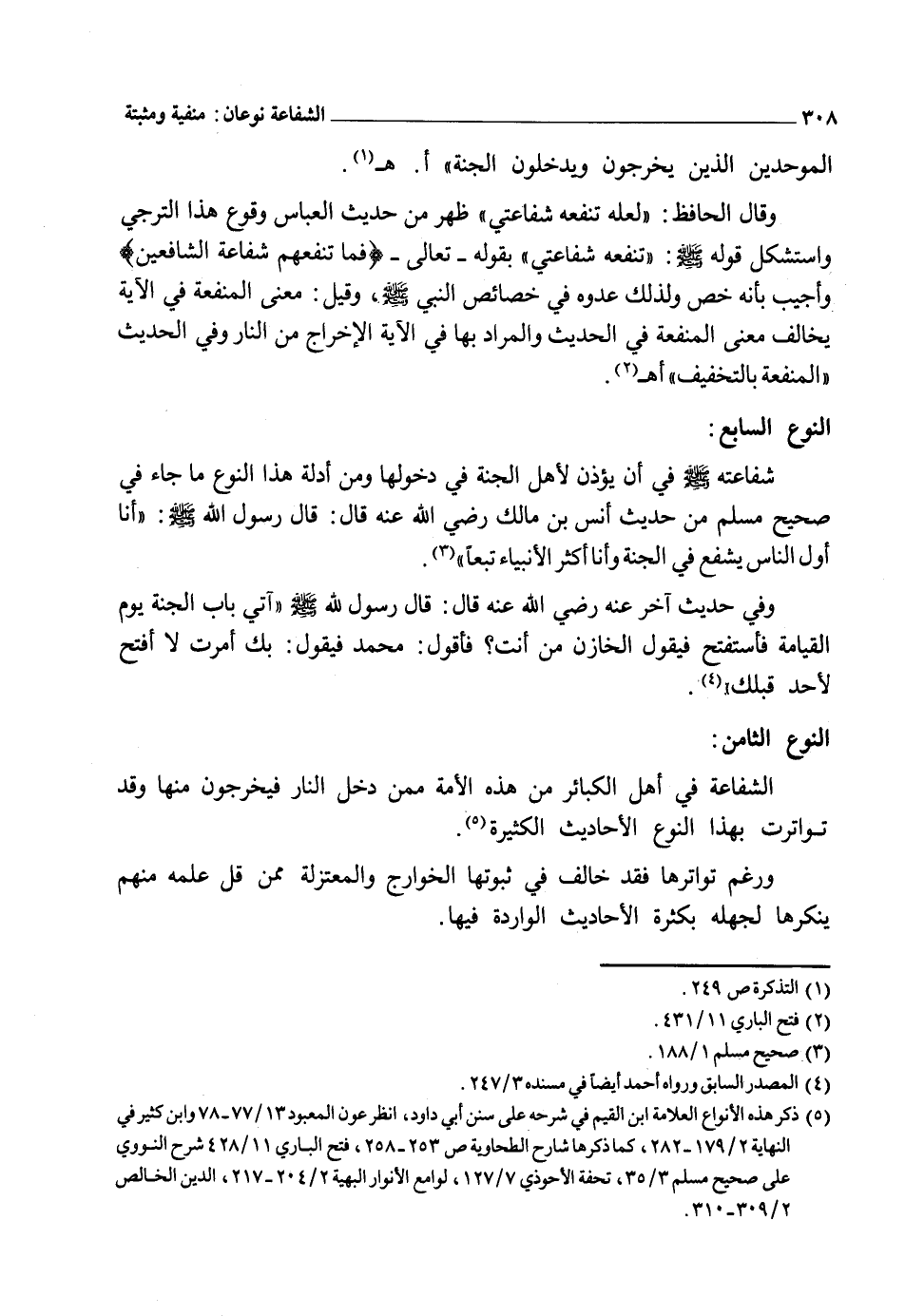 وهذه الشفاعة يشارك فيها النبي صلى الله عليه وسلم الملائكة والنبيون والمؤمنون وأدلة هذا النوع كثيرة جداً.