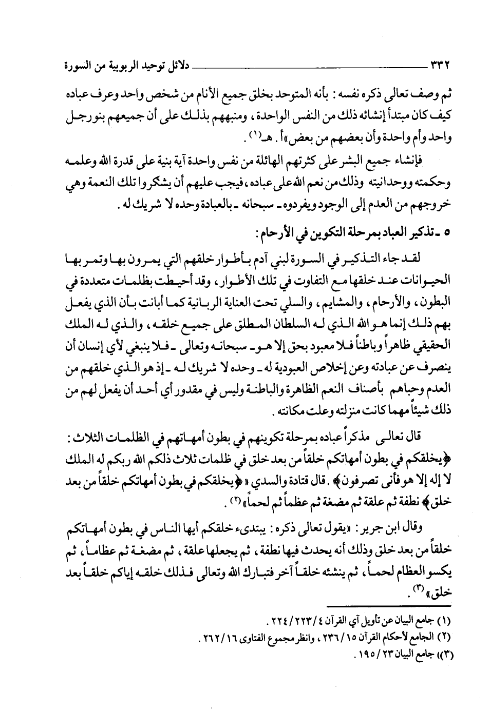 والحال كما قال شيخ الإسلام ابن تيمية: إذ أن خلق الإنسان من أعظم الآيات الدالة على وجدود ـ الخالق سبحانه ـ ومن أعظم الآيات الدالة على عموم قدرته وعلمه، وكمال حكمته وإحسانه ورحمته، ولما كان خلق الإنسان من أوضح الأدلة على وجود ـ الباري جل وعلا ـ ومن أقرب الأدلة وضوحاً للإنسان نفسه أن نجد أن الله ـ تعالى ـ دعا جميع عباده إلى أن يتفكروا وينظروا بعين البصيرة في مبدأ خلقهم، وفي أطوار هذا الخلق والمراحل التي مروا بها حتى صاروا بشراً ينتشرون على هذه الأرض. قال تعالى: {فَلْيَنْظُرِ الإنْسَانُ مِمَّ خُلِقَ} 5 وقال تعالى: {يَا أَيُّهَا النَّاسُ إِنْ كُنْتُمْ فِي رَيْبٍ مِنَ الْبَعْثِ فَإِنَّا خَلَقْنَاكُمْ مِنْ تُرَابٍ ثُمَّ مِنْ نُطْفَةٍ ثُمَّ مِنْ عَلَقَةٍ ثُمَّ مِنْ مُضْغَةٍ مُخَلَّقَةٍ وَغَيْرِ مُخَلَّقَةٍ لِنُبَيِّنَ لَكُمْ وَنُقِرُّ فِي الأَرْحَامِ مَا
