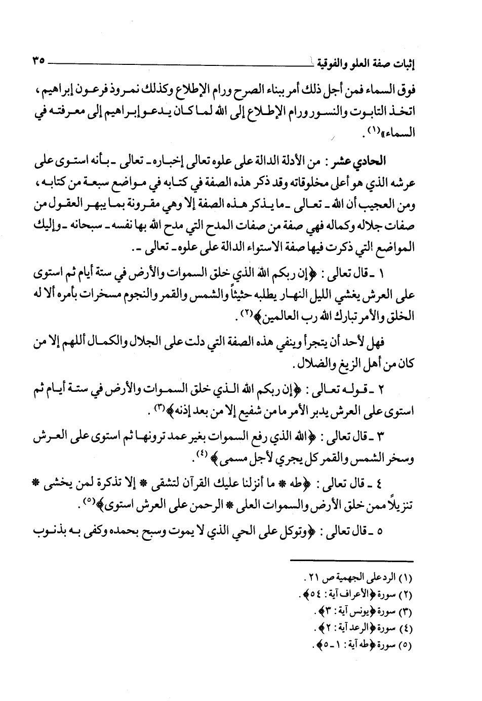 6 ـ وقال تعالى: {اللهُ الَّذِي خَلَقَ السَّمَاوَاتِ وَالأَرْضَ وَمَا بَيْنَهُمَا فِي سِتَّةِ أَيَّامٍ ثُمَّ اسْتَوَى عَلَى الْعَرْشِ مَا لَكُمْ مِنْ دُونِهِ مِنْ وَلِيٍّ وَلا شَفِيعٍ أَفَلا تَتَذَكَّرُونَ} 2.