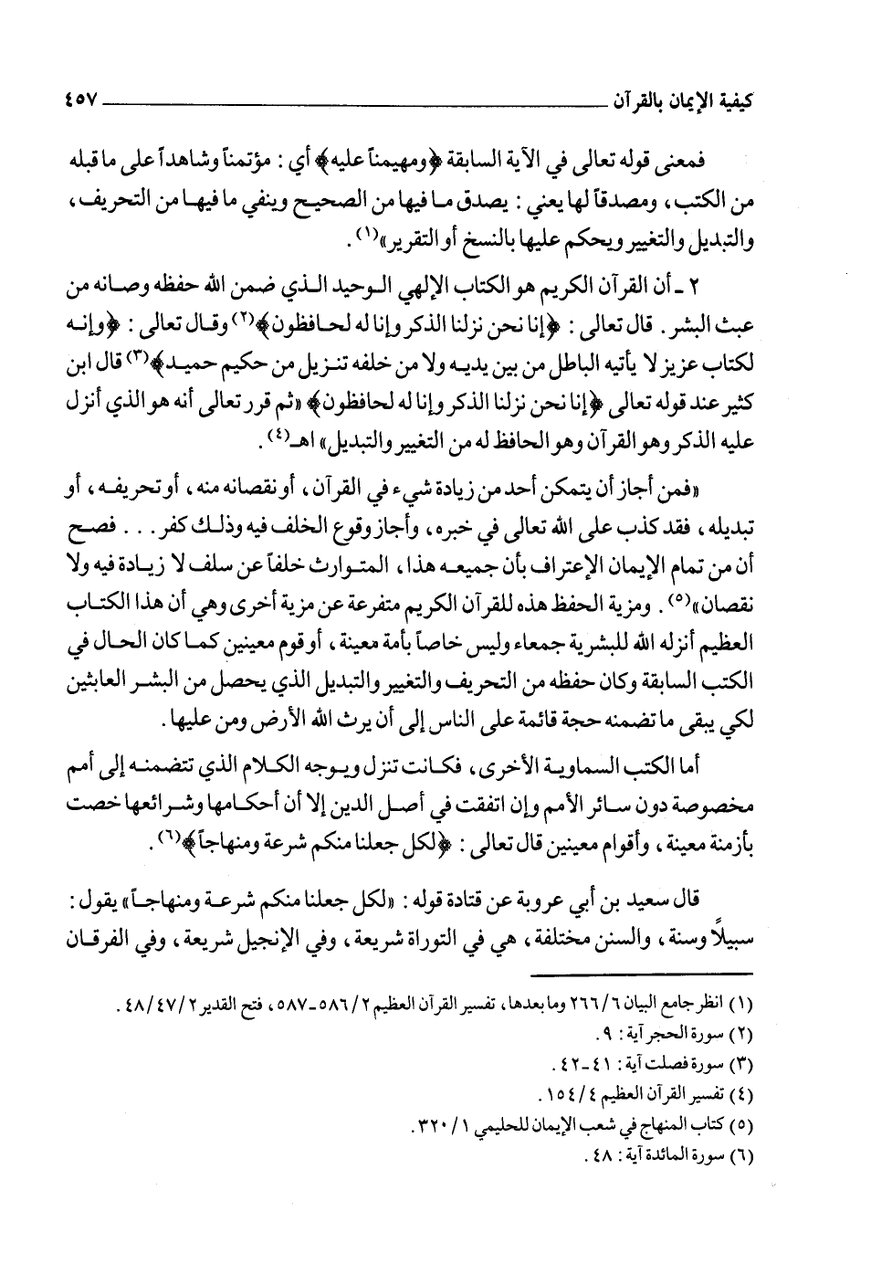 وتلك الشرائع التي سبقت القرآن لم يضمن الله حفظها على مدى الأزمان كما هو الشأن في القرآن، بل أخبرنا ـ سبحانه ـ بما طرأ على تلك الكتب من التحريف.