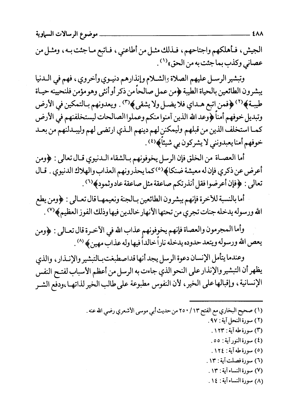 عنها، فقد أرسل الله الرسل ليبصروا النفوس بالخير العظيم الذي يحصلونه من وراء الإيمان والأعمال الصالحة فإن النفوس تشتاق إلى تحصيل الخير، وعندما تبين الرسل عليهم الصلاة والسلام الأضرار العظيمة التي تلحق النفوس من وراء الكفر والضلال فإنها تهرب من هذه الأعمال المشقية.