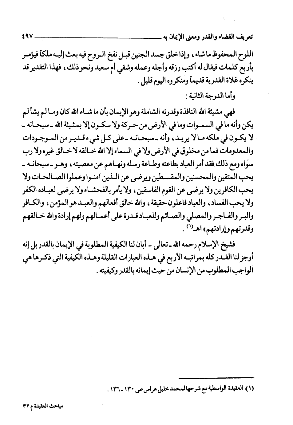 قال ابن كثير رحمه الله ـ تعالى ـ حول هذه الآية "يخبر تعالى عن اغترار المشركين بما هم فيه من الإشراك واعتذارهم محتجين بالقدر بقولهم {لَوْ شَاءَ اللهُ مَا أَشْرَكْنَا وَلا آبَاؤُنَا وَلا حَرَّمْنَا مِنْ شَيْءٍ} أي من البحائر والسوائب والوصائل وغير ذلك مما كانوا ابتدعوه واخترعوه من تلقاء أنفسهم ما لم ينزل به سلطاناً ومضمون كلامهم أنه لو كان ـ تعالى ـ كارهاً لما فعلنا لأنكره علينا بالعقوبة ولما مكننا منه، قال ـ تعالى ـ راداً عليهم شبهتهم {فَهَلْ عَلَى الرُّسُلِ إِلاَّ الْبَلاغُ الْمُبِينُ} أي ليس الأمر كما تزعمون أنه لم ينكره عليكم بل قد أنكره عليكم أشد الإنكار ونهاكم عنه أشد النهي، وبعث في كل أمة أي في كل قرن وطائفة من الناس رسولاً، وكلهم يدعون إلى عبادة الله، وينهون عن عبادة ما سواه،