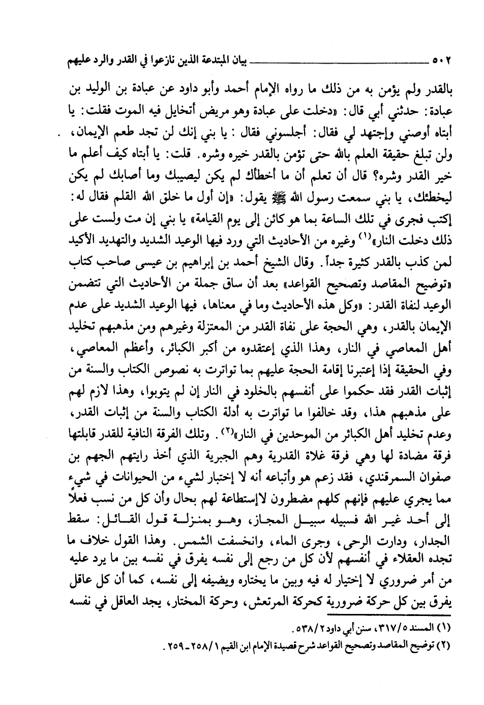 4- مدارج السالكين 3/426 ـ 427، وانظر التفسير القيم ص287 ـ 288. وانظر شرح الطحاوية ص494 ـ 495.