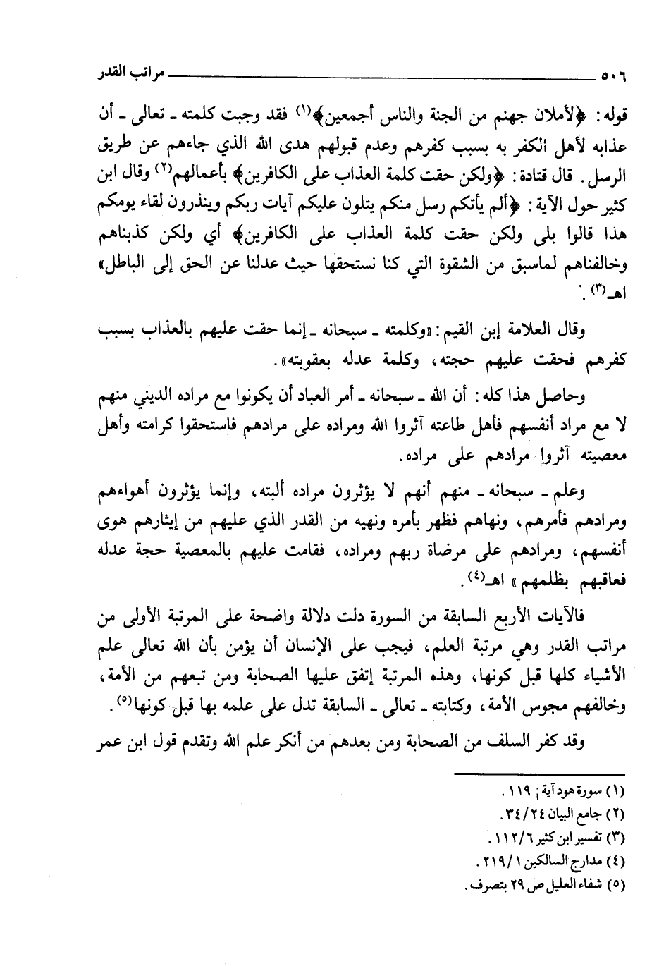فالله تعالى علم أرزاق عباده وآجالهم وأحوالهم وأعمالهم، وجميع حركاتهم وسكناتهم، وشقاوتهم وسعادتهم، من قبل أن يخلقهم وهذا هو مقتضى اسمه العليم الخبير عالم الغيب والشهادة علام الغيوب، كما قال ـ عز وجل ـ {هُوَ اللهُ الَّذِي لا إِلَهَ إِلاَّ هُوَ عَالِمُ الْغَيْبِ وَالشَّهَادَةِ} 3. وقوله ـ تعالى ـ: {لِتَعْلَمُوا أَنَّ اللهَ عَلَى كُلِّ شَيْءٍ قَدِيرٌ وَأَنَّ اللهَ قَدْ أَحَاَطَ بِكُلِّ شَيْءٍ عِلْماً} 4 وقوله ـ عز شأنه ـ: {إِنَّ رَبَّكَ هُوَ أَعْلَمُ بِمَنْ ضَلَّ عَنْ سَبِيلِهِ وَهُوَ أَعْلَمُ بِمَنِ اهْتَدَى} 5 وقال تعالى: {هُوَ أَعْلَمُ بِكُمْ إِذْ أَنْشَأَكُمْ مِنَ الأَرْضِ وَإِذْ أَنْتُمْ أَجِنَّةٌ فِي بُطُونِ أُمَّهَاتِكُمْ فَلا تُزَكُّوا أَنْفُسَكُمْ هُوَ أَعْلَمُ بِمَنِ اتَّقَى} 6.
