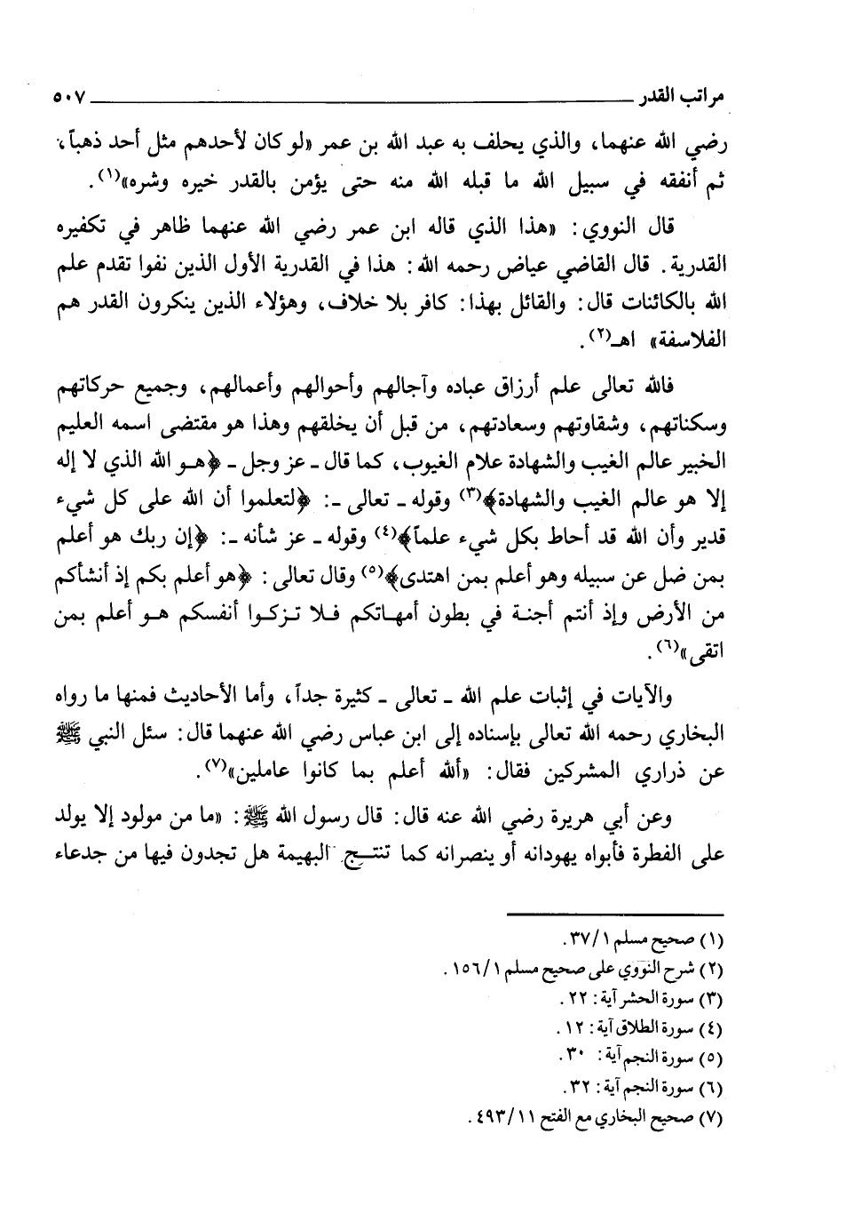 قال نووي: "وفي قوله صلى الله عليه وسلم: "الله أعلم بما كانوا عاملين" بيان لمذهب أهل الحق، أن الله علم ما كان وما يكون وما لا يكون لو كان كيف كان يكون" اهـ2.