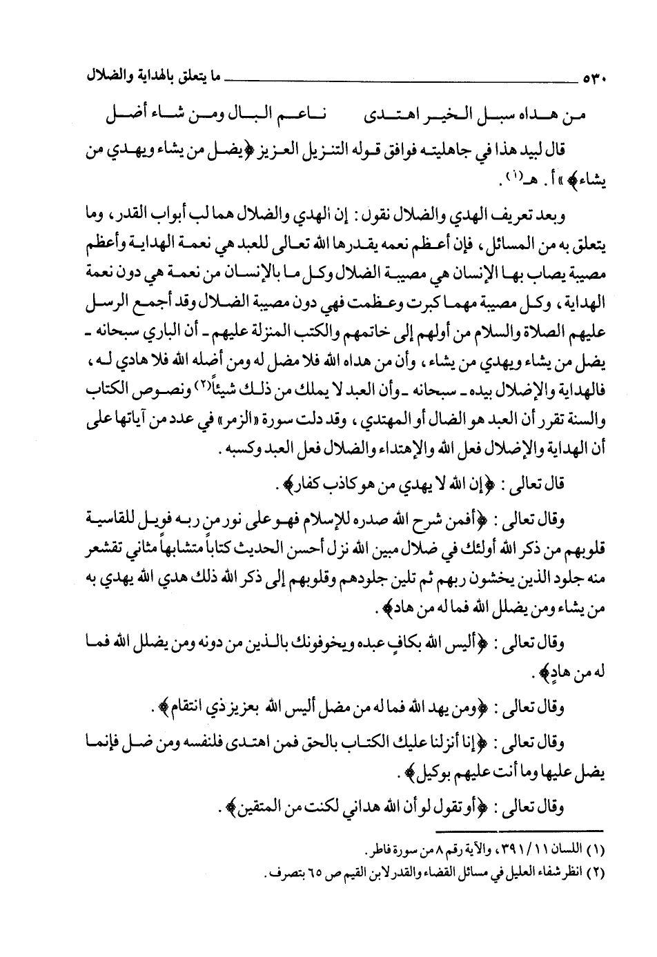 هذه سبع آيات من السورة دلت على أن الهداية والإضلال بيد الله، وأن الله تعالى هو الهادي والعبد هو المهتدي.