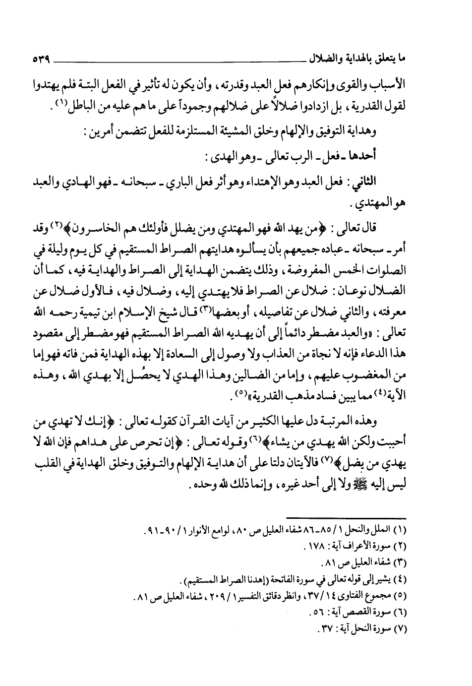 2- شفاء العليل في مسائل القضاء والقدر ص82 ـ 83.