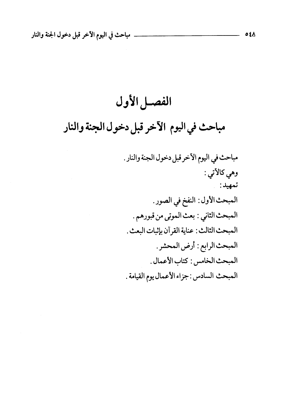 الفصل الأول: مباحث في اليوم الآخر قبل دخول الجنة والنار
