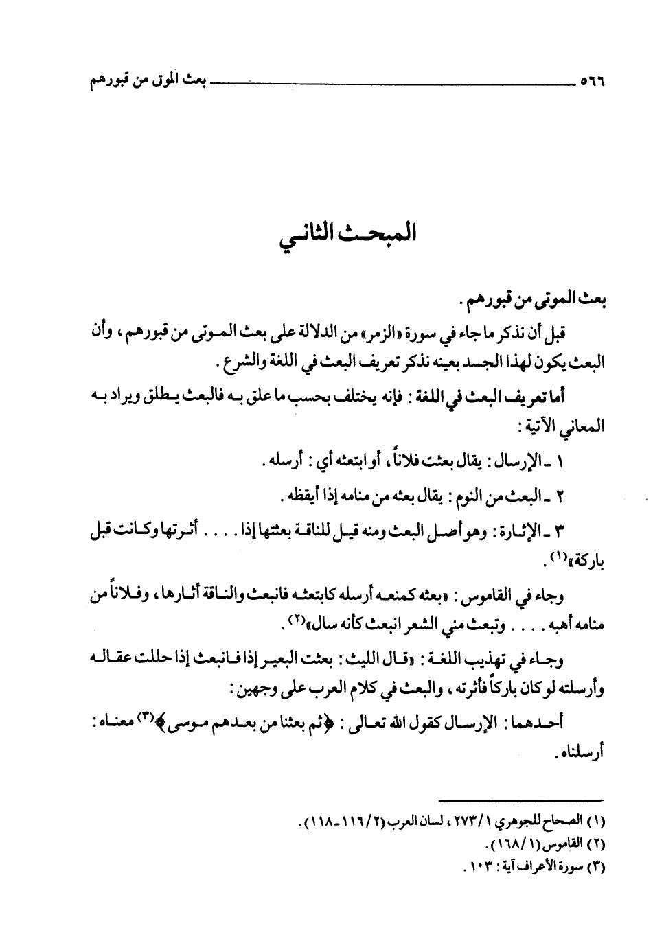 الثاني: والبعث أيضاً: الإحياء من الله للموتى ومنه قوله ـ جل وعلا ـ {ثُمَّ بَعَثْنَاكُمْ مِنْ بَعْدِ مَوْتِكُمْ} 1 أي: أحييناكم2.