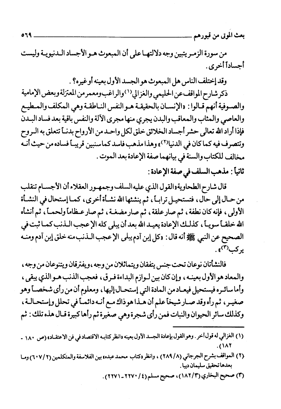 1- شرح الطحاوية ص 463 ـ 464، وانظر مجموع الفتاوى لابن تيمية 17/248.