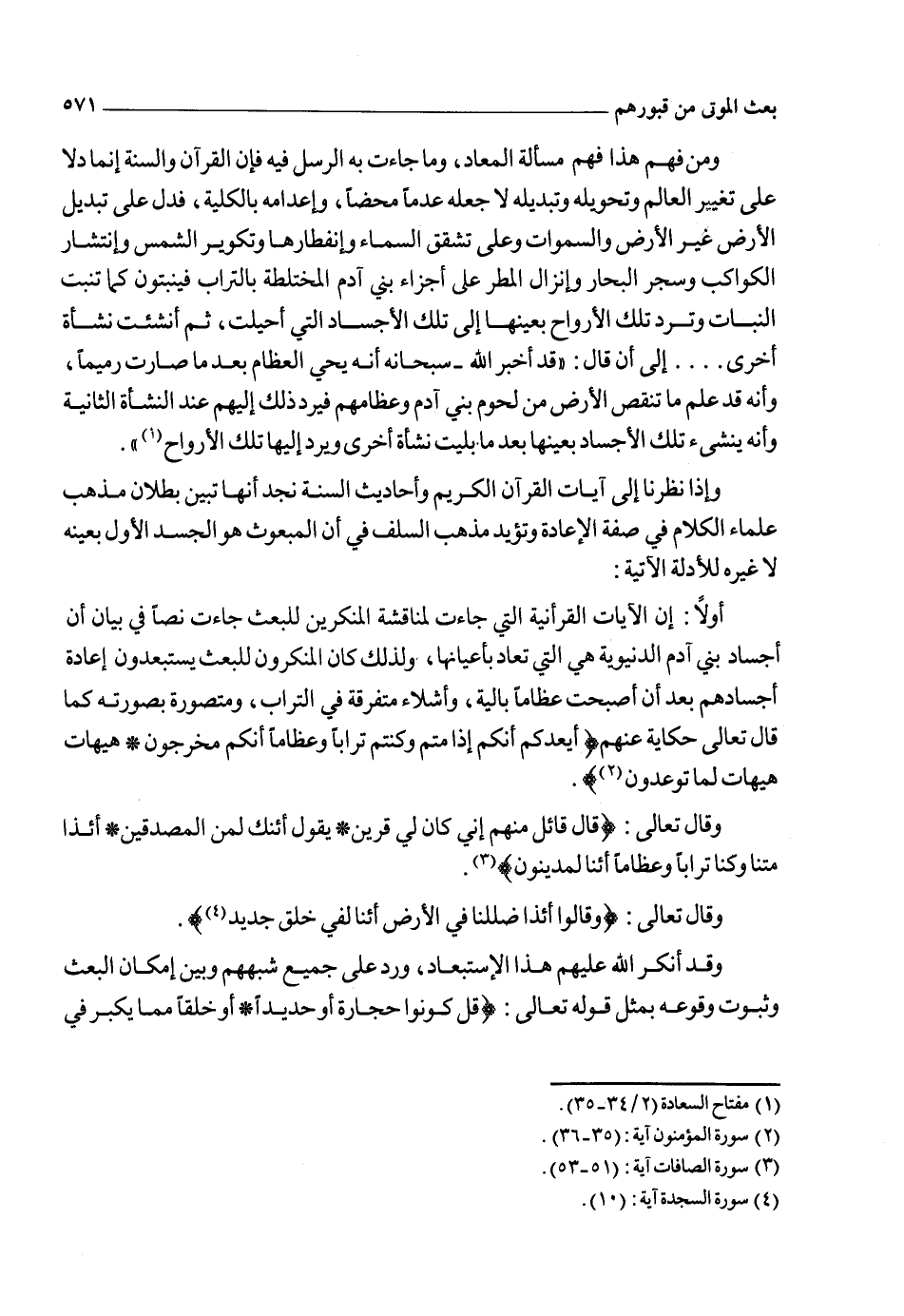 ثانياً: مما يؤكد أن المعاد هو عين الجسد الأول لا غيره قوله تعالى: {وَيَوْمَ يُحْشَرُ أَعْدَاءُ اللهِ إِلَى النَّارِ فَهُمْ يُوزَعُونَ * حَتَّى إِذَا مَا جَاءُوهَا شَهِدَ عَلَيْهِمْ سَمْعُهُمْ وَأَبْصَارُهُمْ وَجُلُودُهُمْ بِمَا كَانُوا يَعْمَلُونَ * وَقَالُوا لِجُلُودِهِمْ لِمَ شَهِدْتُمْ عَلَيْنَا قَالُوا أَنْطَقَنَا اللهُ الَّذِي أَنْطَقَ كُلَّ شَيْءٍ وَهُوَ خَلَقَكُمْ أَوَّلَ مَرَّةٍ وَإِلَيْهِ تُرْجَعُونَ * وَمَا كُنْتُمْ تَسْتَتِرُونَ أَنْ يَشْهَدَ عَلَيْكُمْ سَمْعُكُمْ وَلا أَبْصَارُكُمْ وَلا جُلُودُكُمْ وَلَكِنْ ظَنَنْتُمْ أَنَّ اللهَ لا يَعْلَمُ كَثِيراً مِمَّا تَعْمَلُونَ} 4.