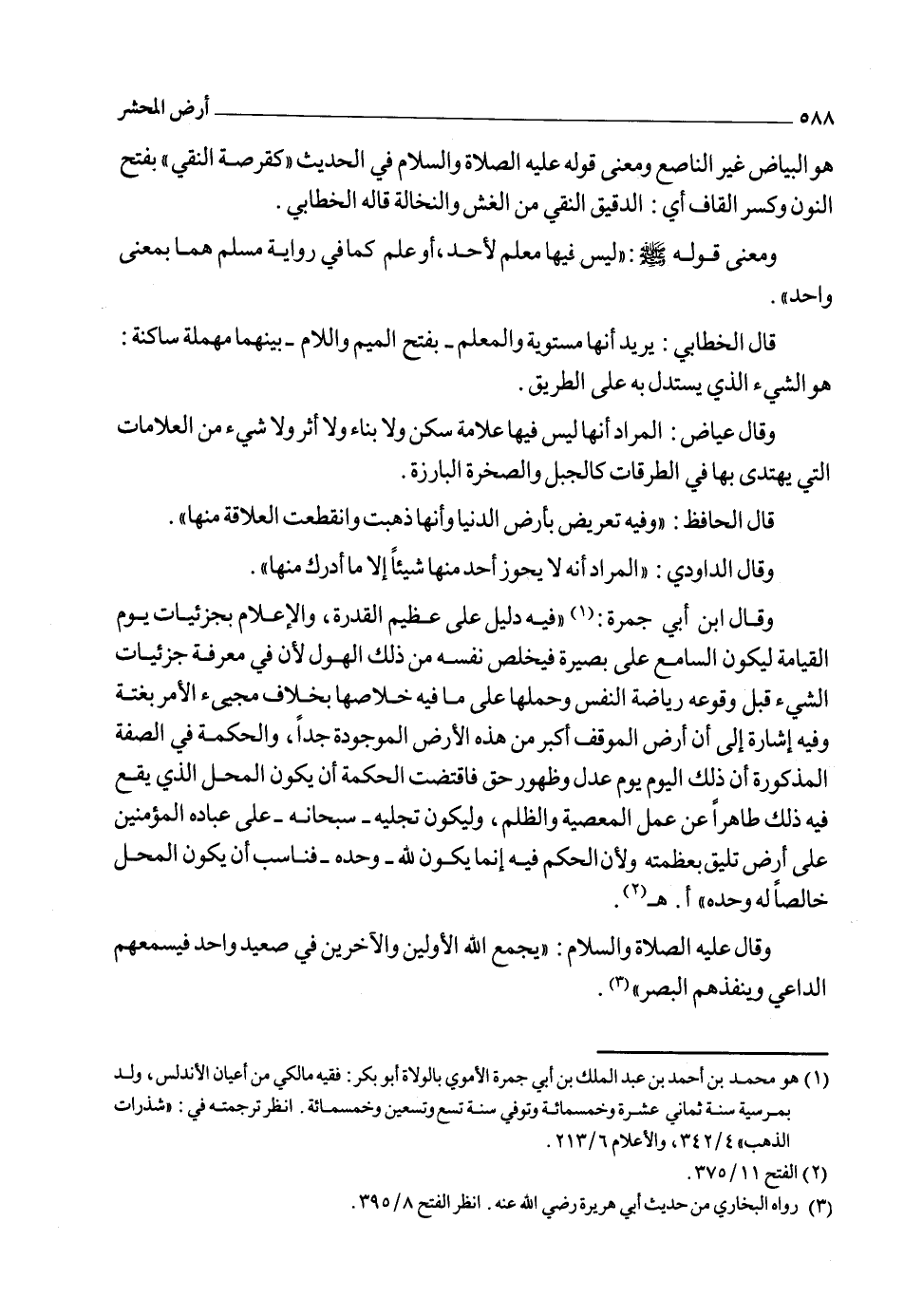 1 ـ حديث سعد المتقدم في بيان صفة أرض المحشر.