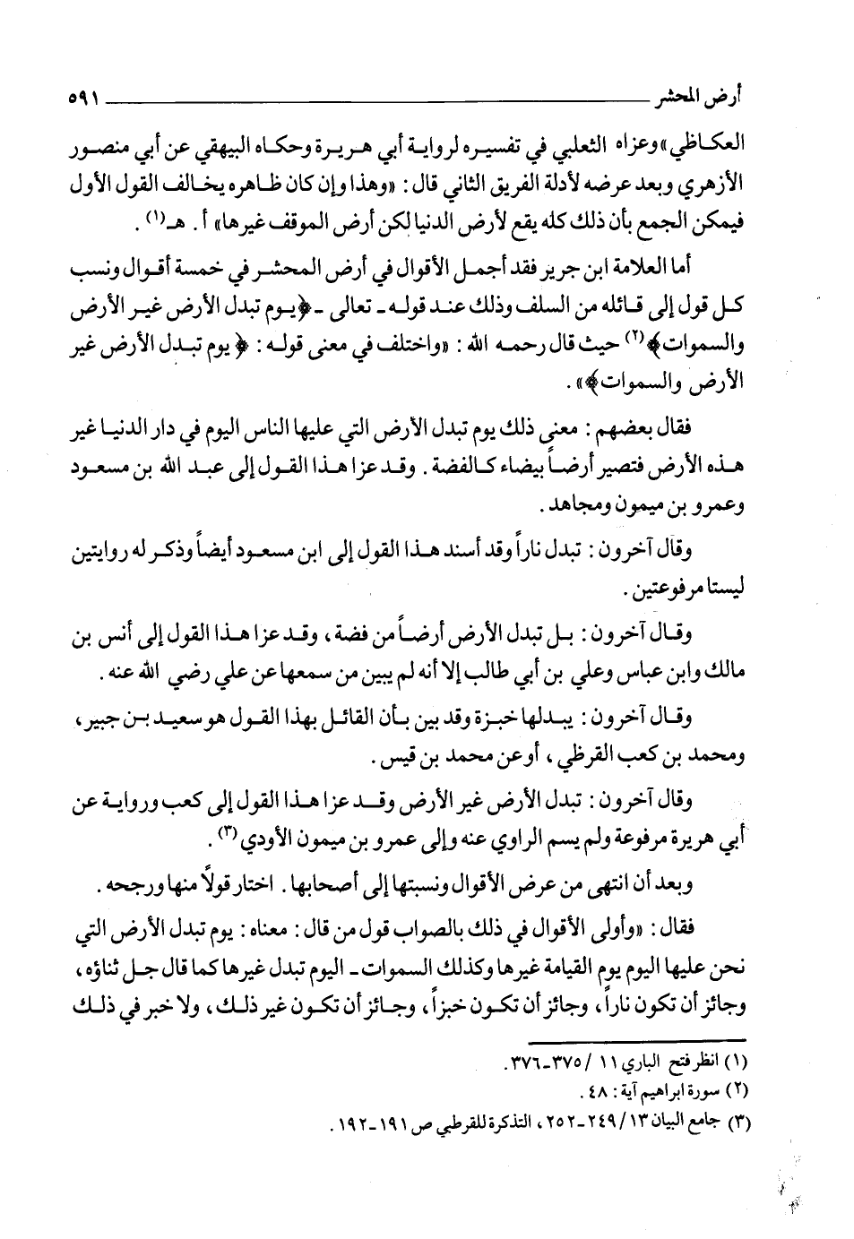 فأما القرآن فقد تقدم قوله ـ تعالى ـ {يَوْمَ تُبَدَّلُ الأَرْضُ غَيْرَ الأَرْضِ وَالسَّمَاوَاتُ وَبَرَزُوا لله الْوَاحِدِ الْقَهَّارِ} 2.