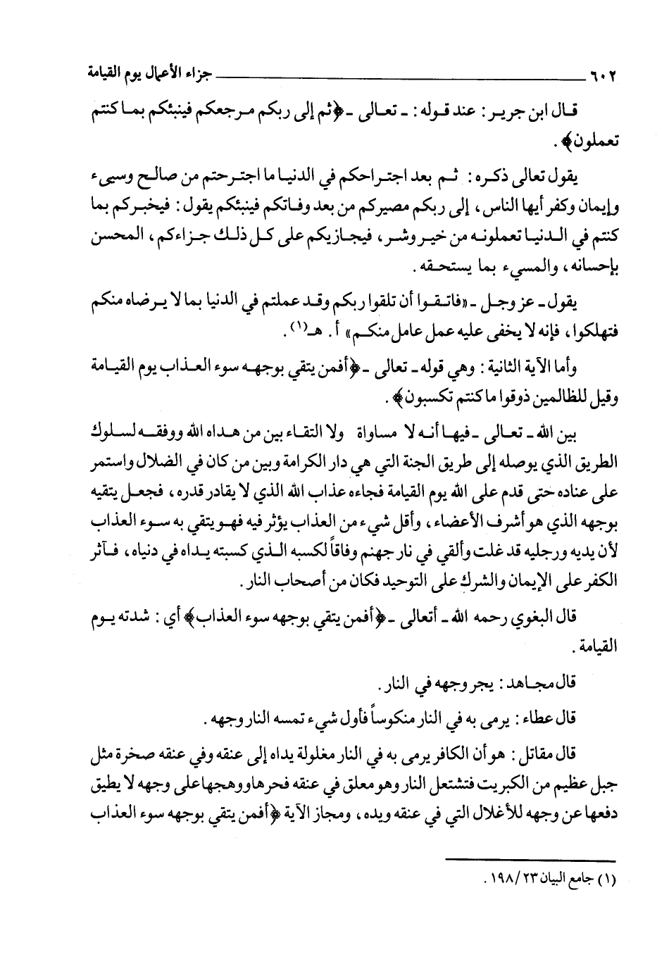 وقال العلامة ابن جرير: حول هذه الآية: "اختلف أهل التأويل في صفة اتقاء هذا الضال بوجهه سوء العذاب".