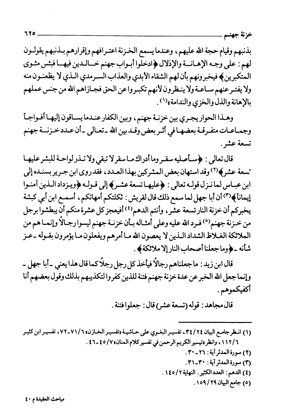 قال تعالى: {لِيَسْتَيْقِنَ الَّذِينَ أُوتُوا الْكِتَابَ وَيَزْدَادَ الَّذِينَ آمَنُوا إِيمَاناً} 2 فقد أخبر ـ تعالى ـ أن عدة خزنة جهنم ليستيقن به أهل التوراة والإنجيل حقيقة ما في كتبهم من الخبر عن عدة خزنة جهنم، إذا وافق ذلك ما أنزل الله في كتابه على محمد صلى الله عليه وسلم.