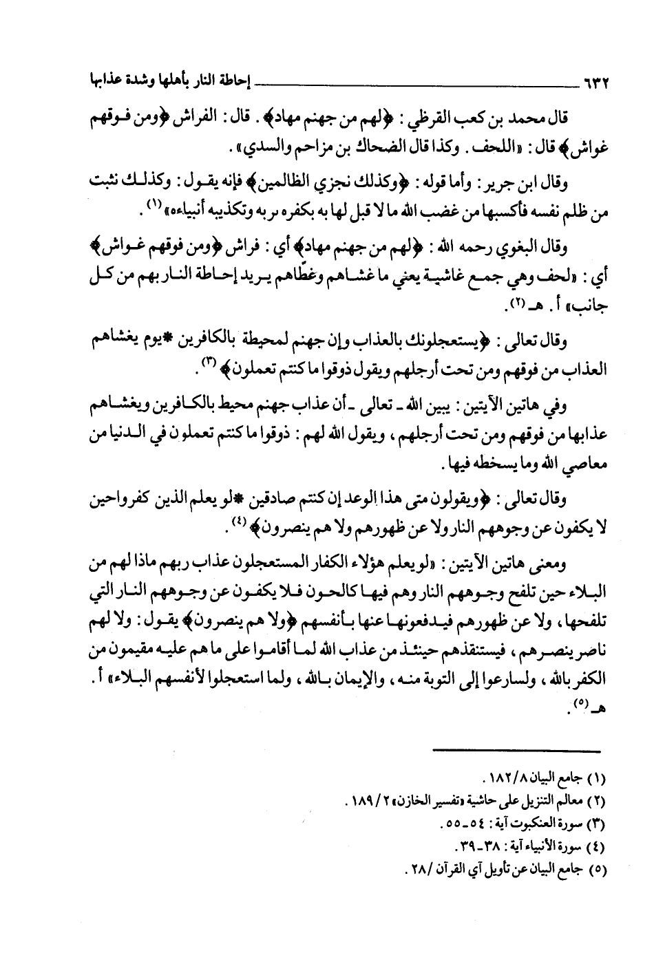 وقال تعالى مبيناً شدة النار التي أعدها للظالمين {إِنَّا أَعْتَدْنَا لِلظَّالِمِينَ نَاراً أَحَاطَ بِهِمْ سُرَادِقُهَا} 1.