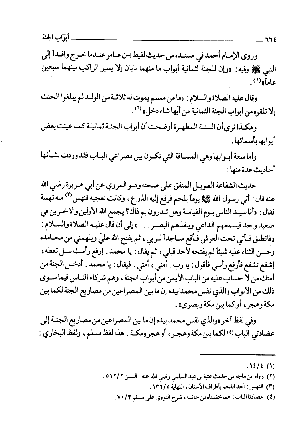 وهذا الحديث الظاهر منه أن هذه المسافة بين الباب، والباب لأن ما بين مكة وبصرى لا يحتمل التقدير بسبعين عاماً، ولا يمكن حمله على باب معين لقوله "ما منهن بابان" والله أعلم5.
