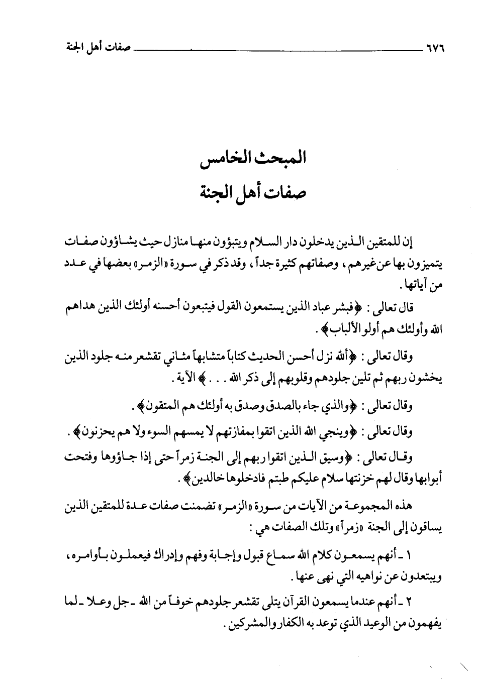 6 ـ الصفة السادسة: أنهم طيبوا أعمالهم في الدنيا فلم يدنسوها بشرك ولا معصية، فطاب مأواهم في الدار الآخرة، وهو أنهم صاروا من سكان الجنة التي عرضها السموات والأرض ونجاهم الله من جهنم، وأمنهم من عذابها.