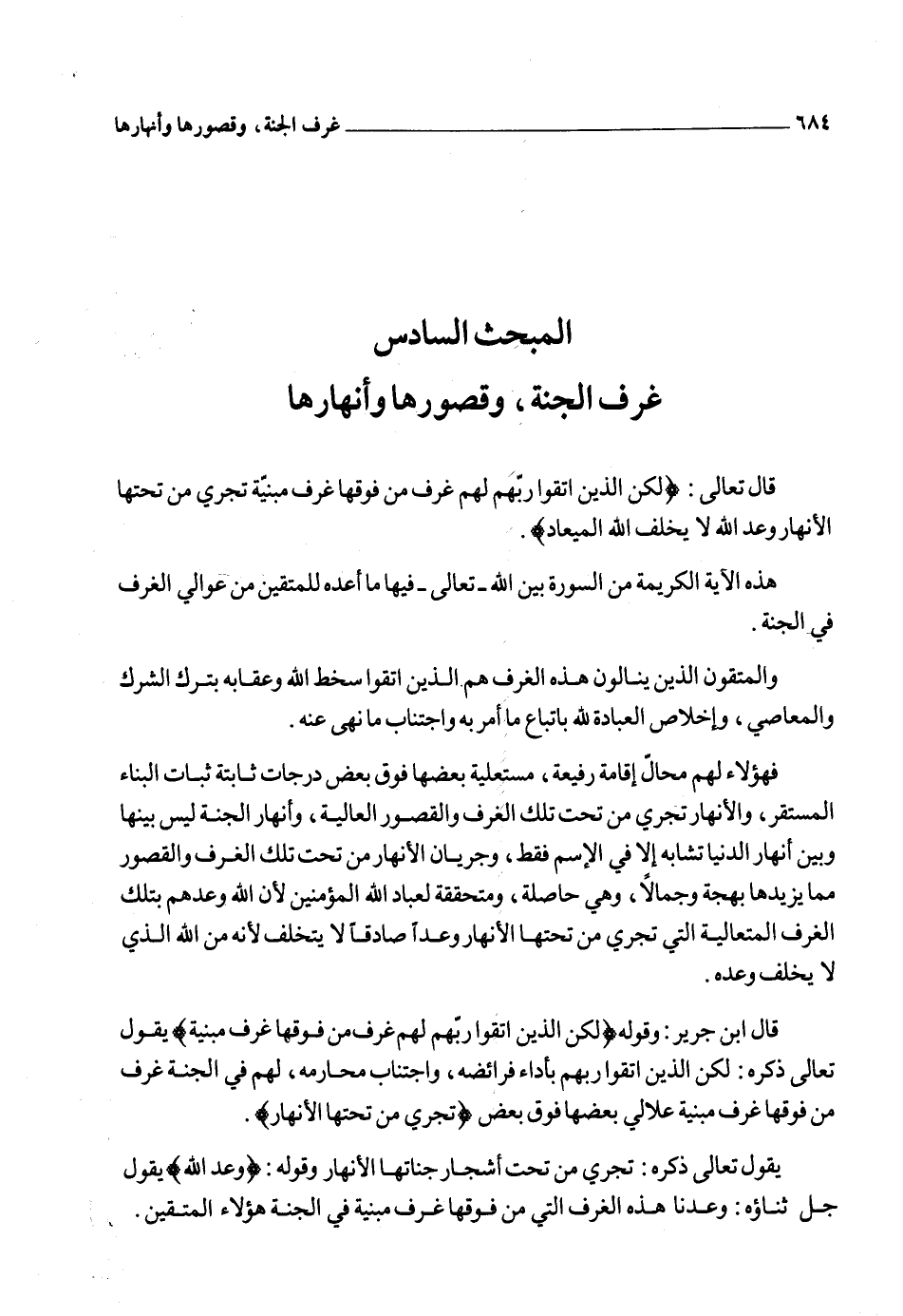 وقال العلامة ابن القيم: قال الله تعالى: {لَكِنِ الَّذِينَ اتَّقَوْا رَبَّهُمْ لَهُمْ غُرَفٌ مِنْ فَوْقِهَا غُرَفٌ مَبْنِيَّةٌ} .