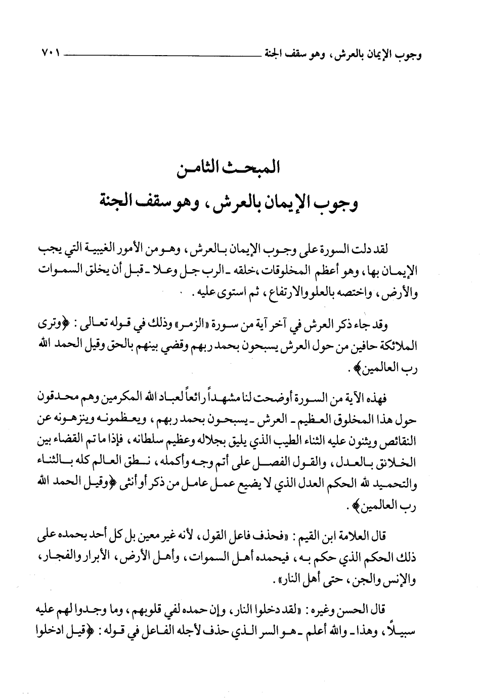 1 ـ الأمر الأول: أن هذه الآية التي نصت على وجوب الإيمان بالعرش جاءت عقب الآيات الدالة على الإيمان بالجنة.