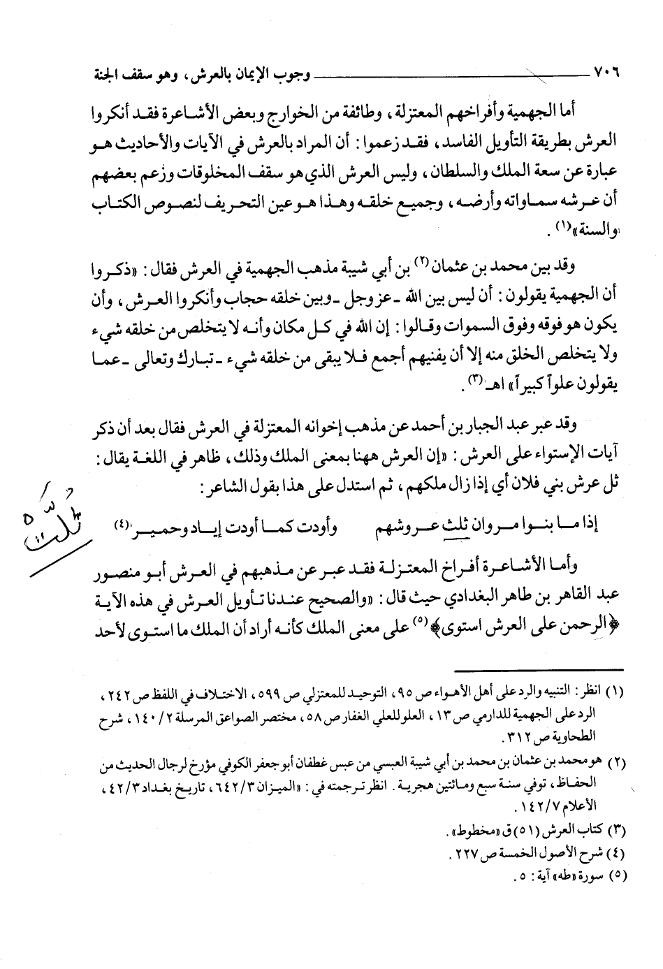 "وأراد بهاتك عرش ابن جفنة سالب ملكه فصح بهذا التأويل العرش على الملك في آية الاستواء على ما بيناه والله الموفق للصواب"1.