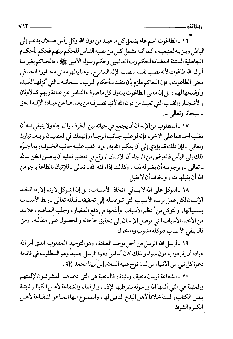 23 ـ أصل الشرك في بني الإنسان والدافع إليه عند جميع فرق المشركين قديماً وحديثاً إنما هو تعلقهم بأذيال الشفاعة الباطلة وزعمهم اتخاذ الأولياء والشفعاء إنما هو لأجل يقربوهم إليه زلفى، وإلا فهم يعتقدون أنها لا تخلق ولا ترزق، ولا تملك من الأمر شيئاً، وهذا من أقبح الأعذار لإقدامهم على أشد الذنوب وأقبحها حرمة عند الله تعالى.