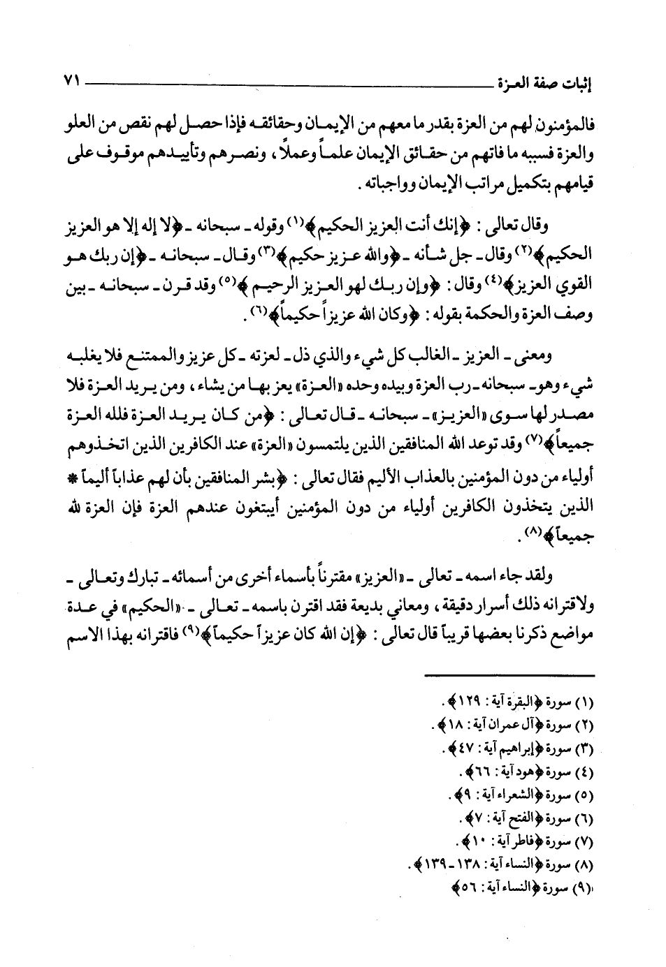 قال تعالى: {وَزَيَّنَّا السَّمَاءَ الدُّنْيَا بِمَصَابِيحَ وَحِفْظاً ذَلِكَ تَقْدِيرُ الْعَزِيزِ الْعَلِيمِ} 5 فهو ـ سبحانه ـ العزيز الذي من عزته انقادت له كل هذه المخلوقات العظيمة فجرت مذللة بأمره