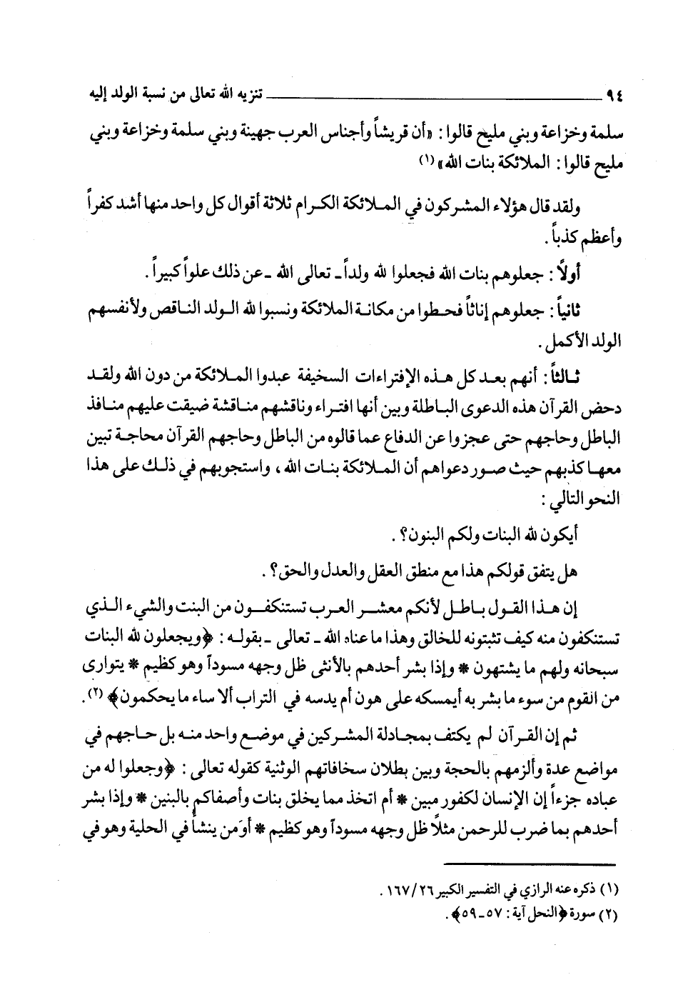 الْخِصَامِ غَيْرُ مُبِينٍ * وَجَعَلُوا الْمَلائِكَةَ الَّذِينَ هُمْ عِبَادُ الرَّحْمَنِ إِنَاثاً أَشَهِدُوا خَلْقَهُمْ سَتُكْتَبُ شَهَادَتُهُمْ وَيُسْأَلونَ} 1.