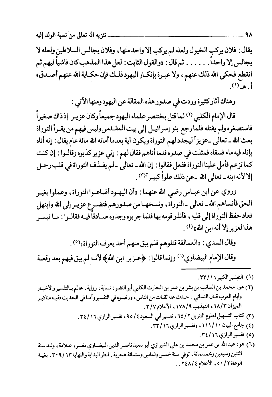 "بختنصر" من يحفظ التوراة وهو لما أحياه الله بعد مائة عام أملى عليهم التوراة حفظاً فتعجبوا من ذلك وقالوا: "ما هذا إلا لأنه ابن الله"1.