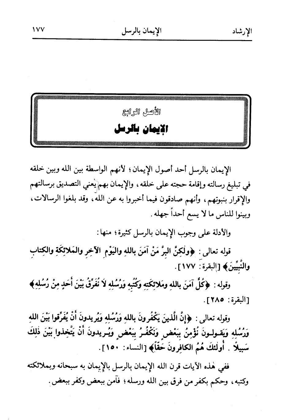 قوله تعالى: {وَلَكِنَّ الْبِرَّ مَنْ آمَنَ بِاللَّهِ وَالْيَوْمِ الآخِرِ وَالْمَلائِكَةِ وَالْكِتَابِ وَالنَّبِيِّينَ} 1. وقوله: {آمَنَ الرَّسُولُ بِمَا أُنْزِلَ إِلَيْهِ مِنْ رَبِّهِ وَالْمُؤْمِنُونَ كُلٌّ آمَنَ بِاللَّهِ وَمَلائِكَتِهِ وَكُتُبِهِ وَرُسُلِهِ} 2.