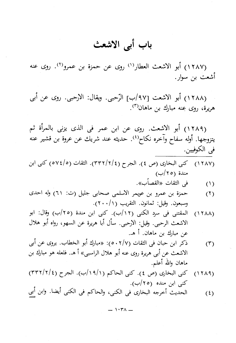 1288 - أبو الاشعت الرّحبى. ويقال: الاحبى. روى عن أبى هريرة، روى عنه مبارك بن ماهان (¬3).