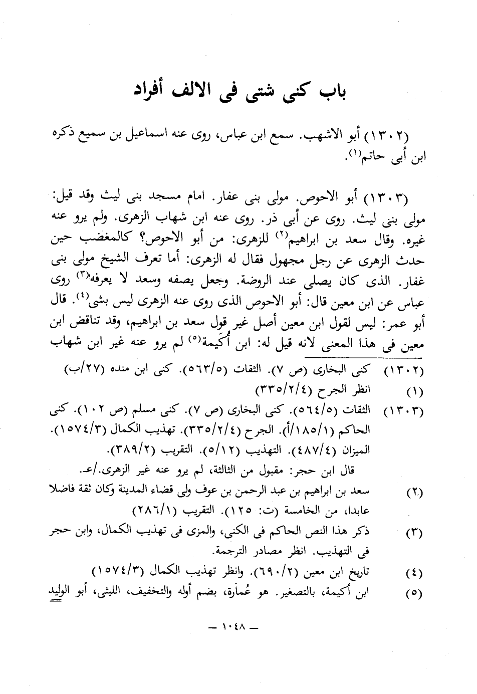 1303 - الثقات (5/ 564). كنى البخارى (ص 7). كنى مسلم (ص 102). كنى الحاكم (1/ 185/ أ). الجرح (4/ 2/ 335). تهذيب الكمال (3/ 1574). الميزان (4/ 487). التهذيب (5/ 12). التقريب (2/ 389).