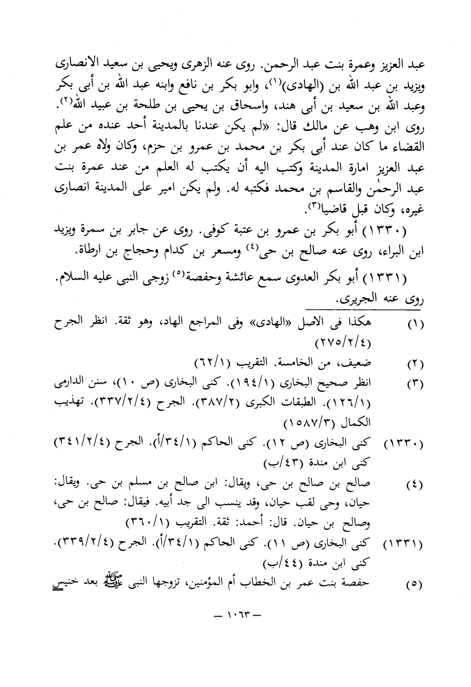 1330 - كنى البخارى (ص 12). كنى الحاكم (1/ 34/ أ). الجرح (4/ 2/ 341) كنى ابن مندة (43/ ب).