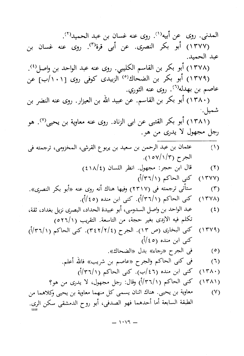 1377 - أبو بكر النصرى. عن أبى قرة (¬3). روى عنه غسان بن عبد الحميد.