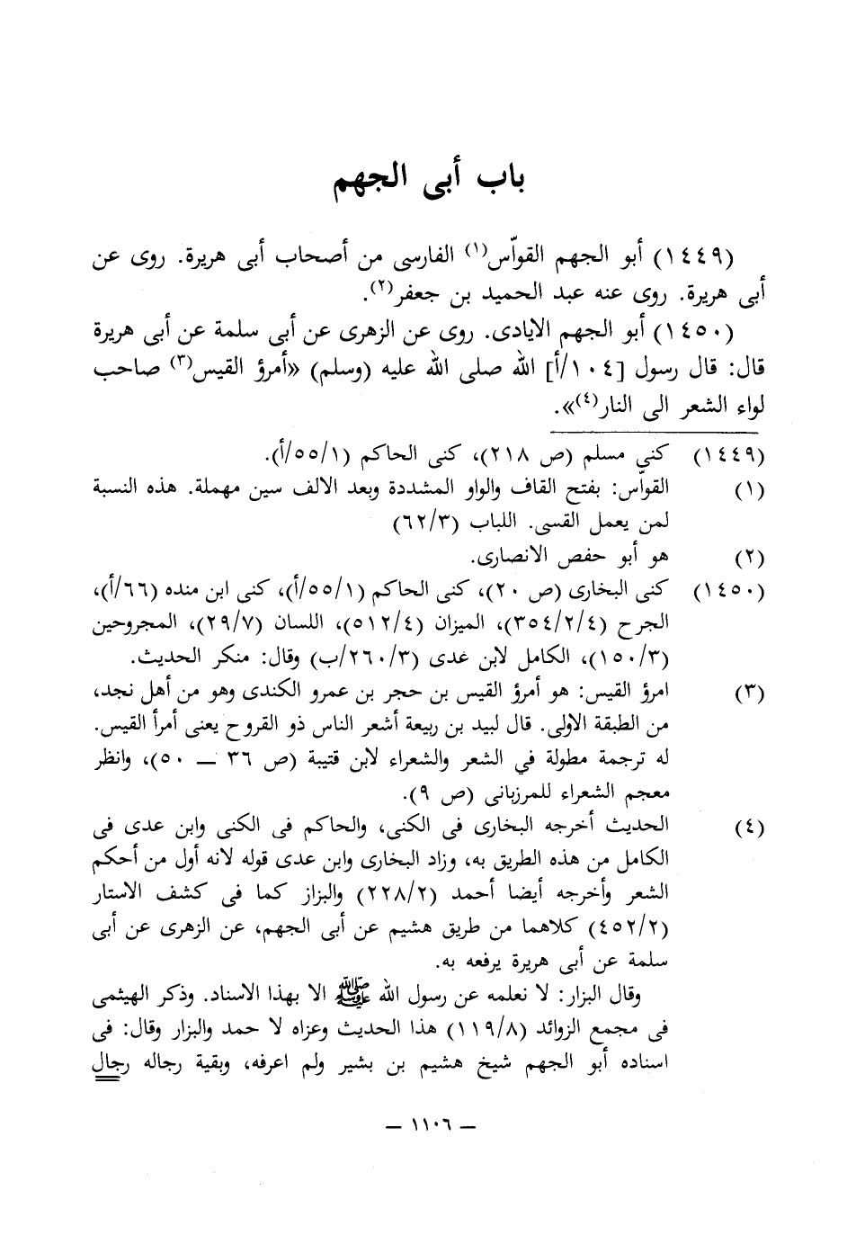 1449 - أبو الجهم القوّاس (¬1) الفارسى من أصحاب أبى هريرة. روى عن أبى هريرة. روى عنه عبد الحميد بن جعفر (¬2).