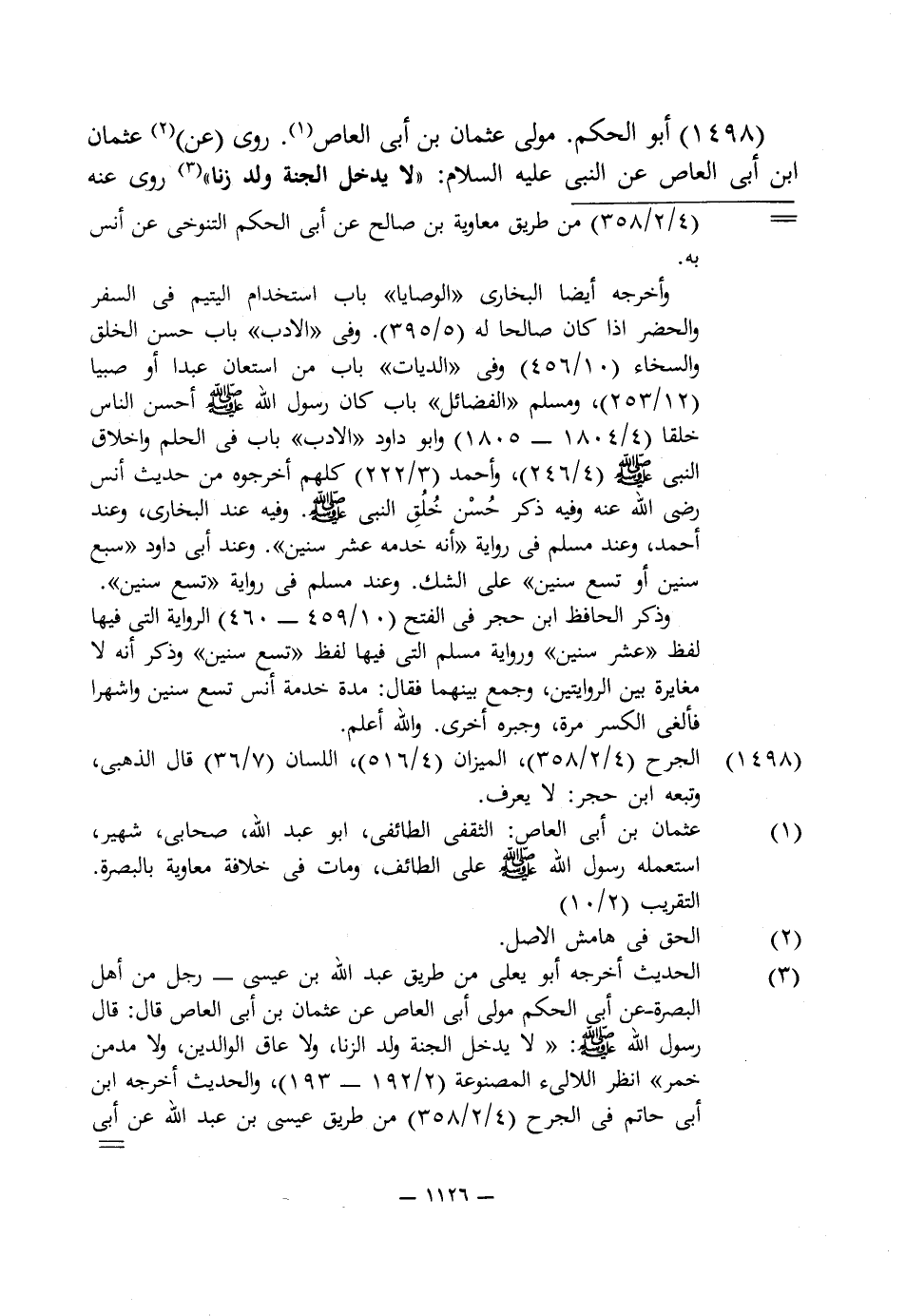 1498 - أبو الحكم. مولى عثمان بن أبى العاص (¬1). روى (عن) (¬2) عثمان ابن أبى العاص عن النبى عليه السلام: "لا يدخل الجنة ولد زنا" (¬3) روى عنه