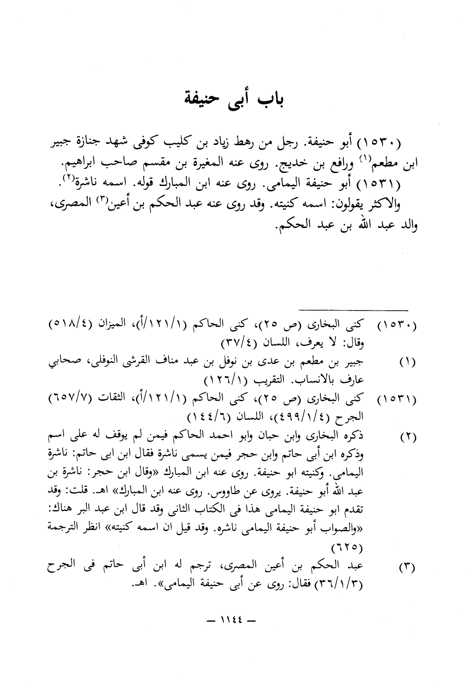 1531 - أبو حنيفة اليمامى. روى عنه ابن المبارك قوله. اسمه ناشرة (¬2).