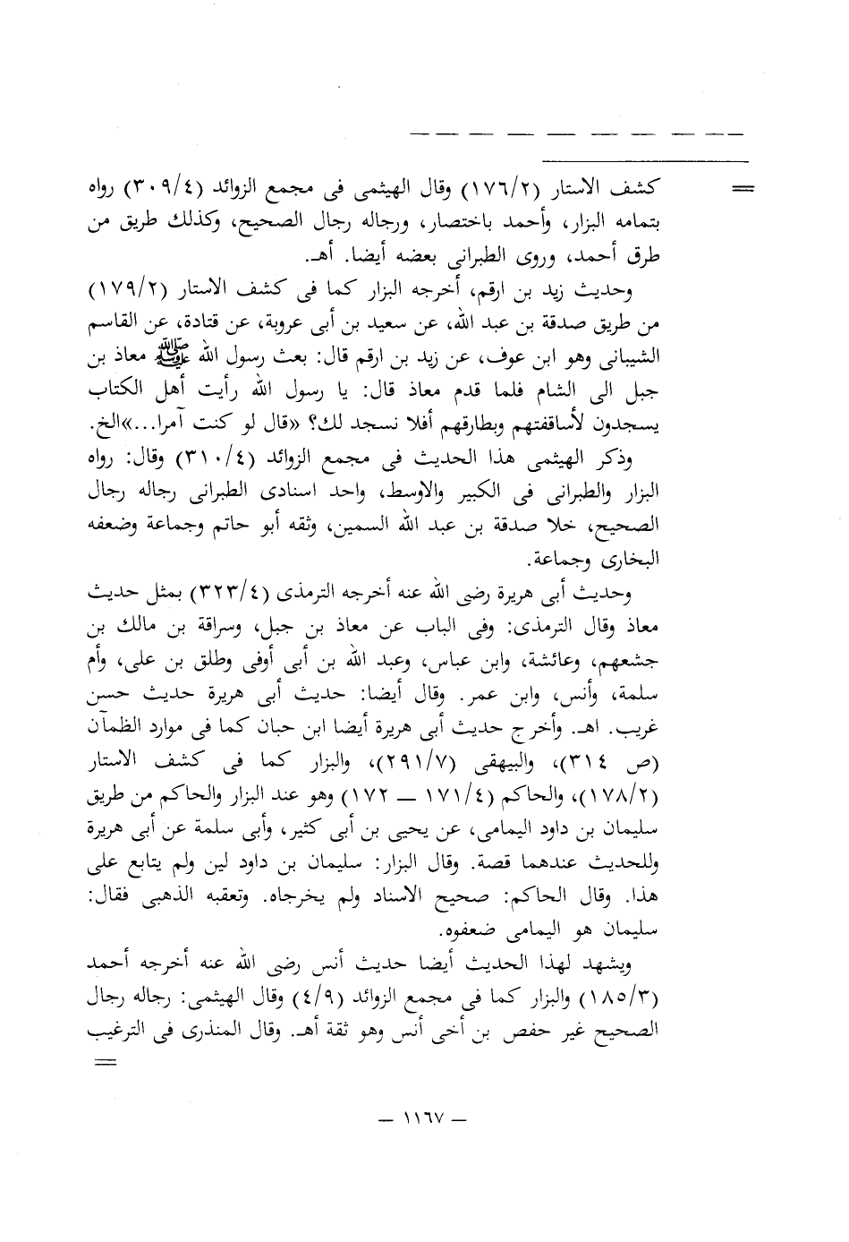 وحديث زيد بن ارقم، أخرجه البزار كما في كشف الأستار (2/ 179) من طريق صدقة بن عبد اللَّه، عن سعيد بن أبى عروبة، عن قتادة، عن القاسم الشيبانى وهو ابن عوف، عن زيد بن ارقم قال: بعث رسول اللَّه -صلى اللَّه عليه وسلم- معاذ بن جبل إلى الشام فلما قدم معاذ قال: يا رسول اللَّه رأيت أهل الكتاب يسجدون لأساقفتهم وبطارقهم أفلا نسجد لك؟ "قال لو كنت آمرا. . . " الخ.