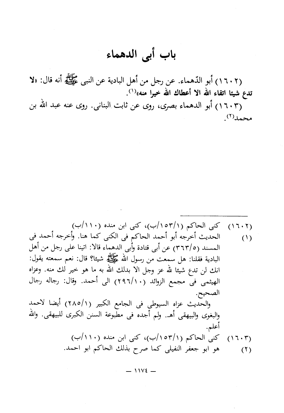 1602 - أبو الدّهماء. عن رسول من أهل البادية عن النبى -صلى اللَّه عليه وسلم- أنه قال "لا تدع شيئا اتقاء اللَّه إلا أعطاك اللَّه خيرا منه" (¬1).