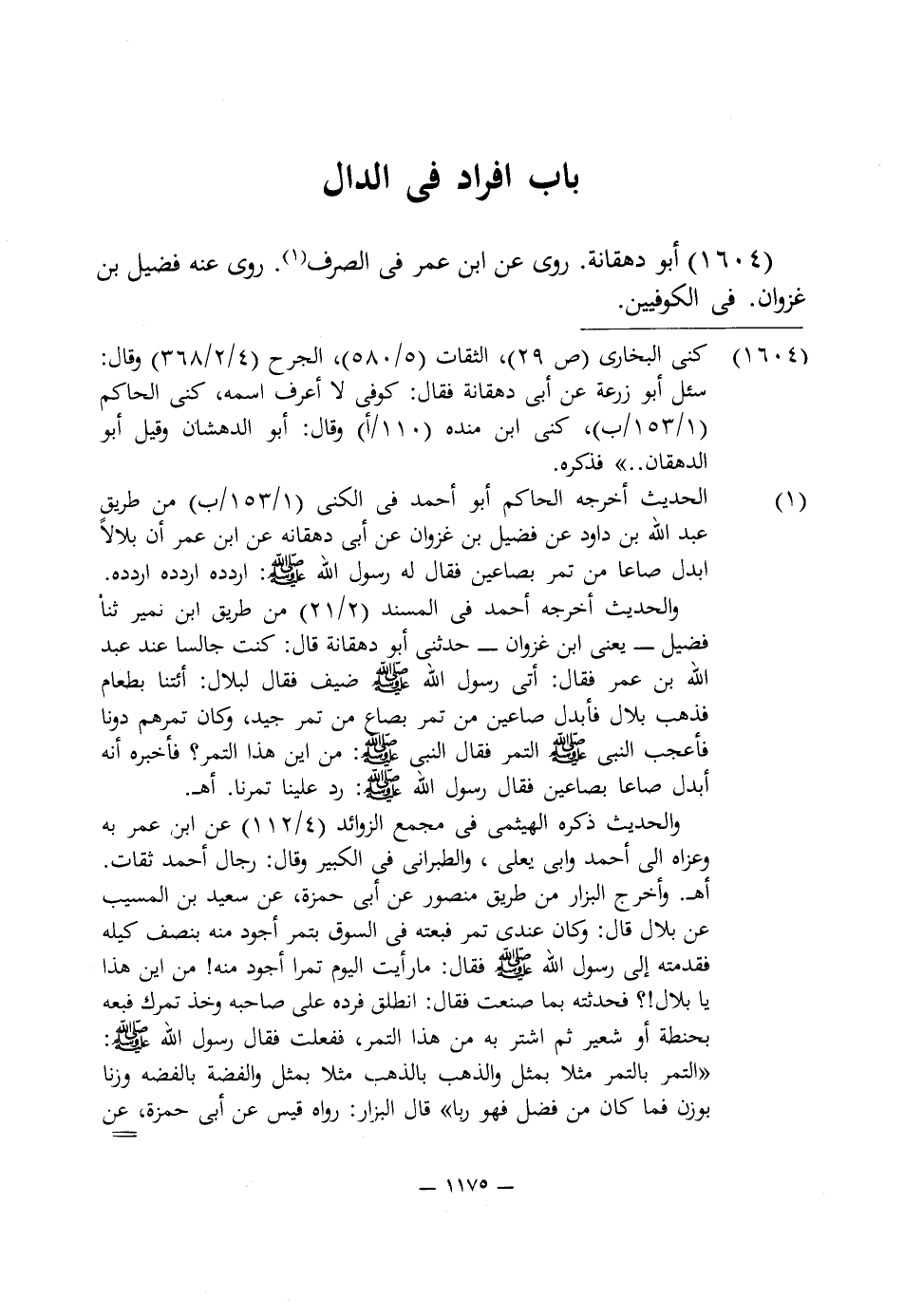1604 - أبو دهقانة. روى عن ابن عمر في الصرف (¬1). روى عنه فضيل بن غزوان. في الكوفيين.