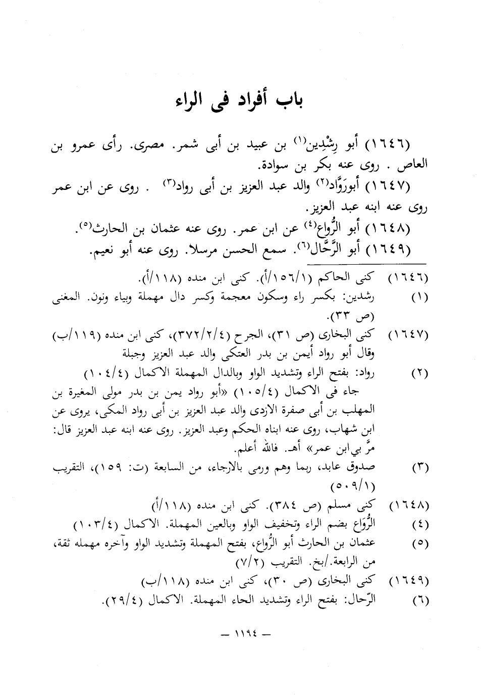 (¬2) رواد: بفتح الراء وتشديد الواو وبالدال المهملة الاكمال (4/ 104).