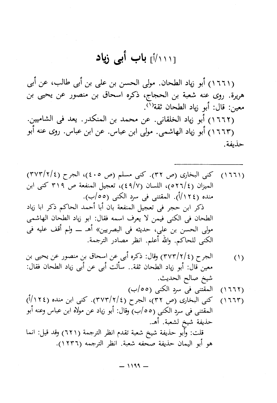 1661 - كنى البخارى (ص 32). كنى مسلم (ص 405)، الجرح (4/ 2/ 373) الميزان (4/ 526)، اللسان (7/ 49)، تعجيل المنفعة ص 319 كنى ابن منده (124/ أ). المقتنى في سرد الكنى (55/ ب).