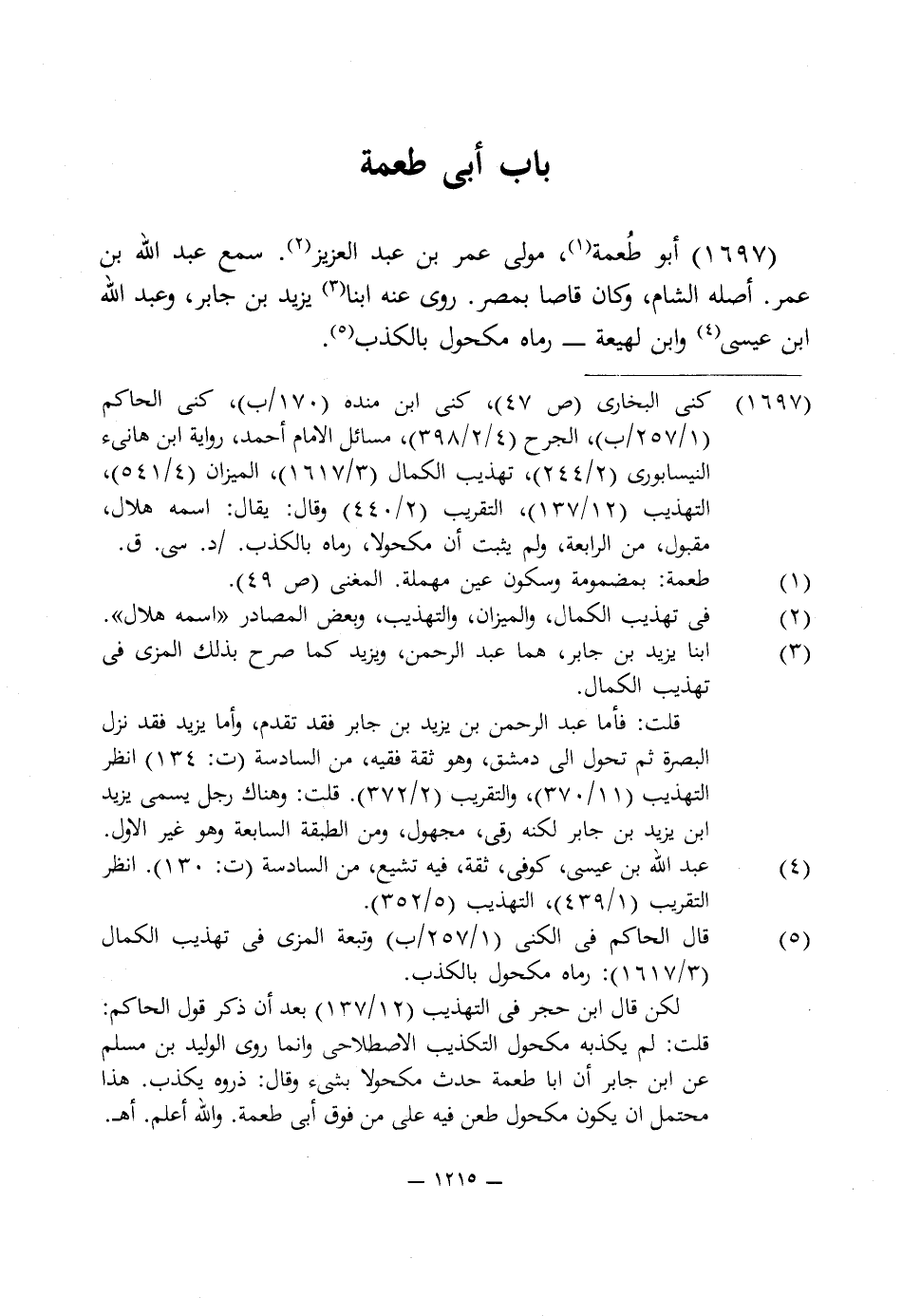 (¬5) قال الحاكم في الكنى (1/ 257/ ب) وتبعة المزى في تهذيب الكمال (3/ 1617): رماه مكحول بالكذب.